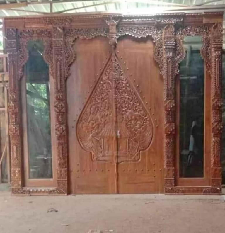 Pintu gebyok kayu jati dengan ukiran khas Jawa